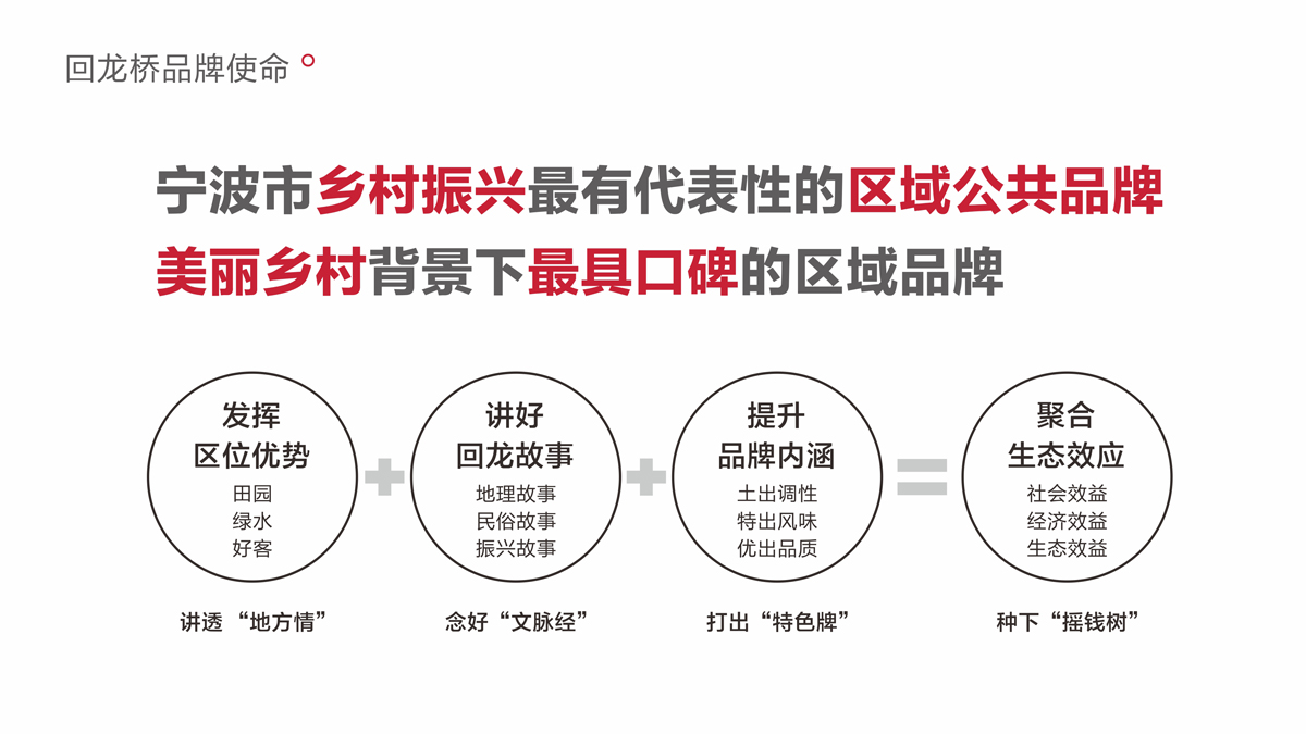 鄉(xiāng)村振興貴在激發(fā)區(qū)域內(nèi)生動力,品牌強農(nóng),促進農(nóng)品增值,農(nóng)業(yè)增效,農(nóng)民增收。回龍村作為寧波鄞州的璀璨明珠之一,紅色印記、五星文化禮堂、回龍小蔥,擁有深厚的人文底蘊。整合回龍村文化藝術、生態(tài)農(nóng)業(yè)資源,明目標,重價值,靚形象,優(yōu)結構,強傳播,打造回龍橋區(qū)域公用品牌,不僅能讓回龍村的小蔥、瓜菜、種殖等產(chǎn)業(yè)跨越式崛起,也能使回龍村成為浙江鄉(xiāng)村振興代表,中國鄉(xiāng)村振興的樣板。